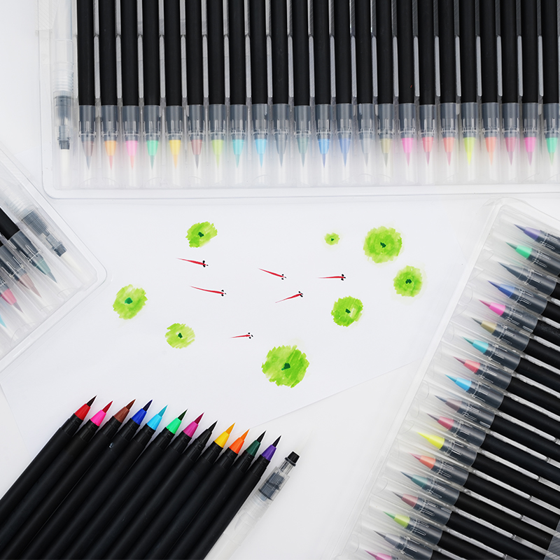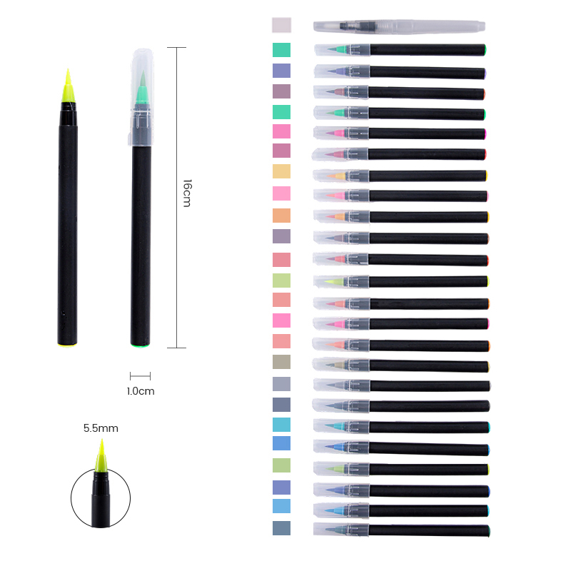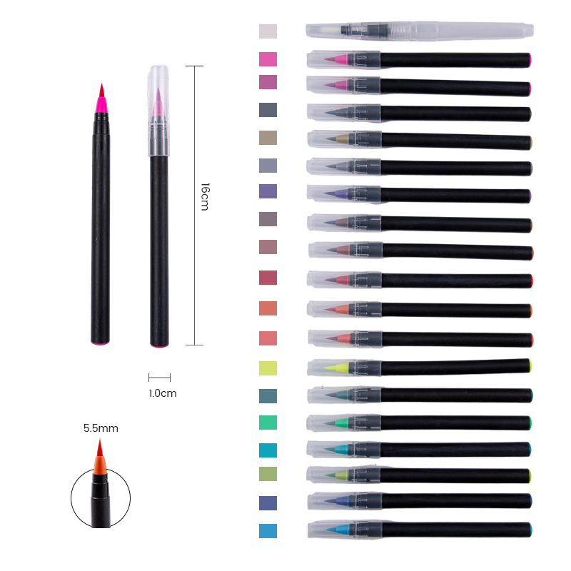 Para ampliar las posibilidades creativas, este juego incluye un bolígrafo con cepillo de agua recargable adicional. Esta herramienta mejora los efectos de acuarela al permitir a los usuarios mezclar tinta suavemente y crear transiciones suaves entre colores. Simplemente llene el bolígrafo con agua y úselo junto con el marcador de pincel de color Calligraphy Soft Nib para lograr hermosos efectos de gradiente y diseños fluidos. La combinación de estas dos herramientas facilita la experimentación con diferentes técnicas artísticas, añadiendo profundidad y textura a ilustraciones y proyectos de letras.