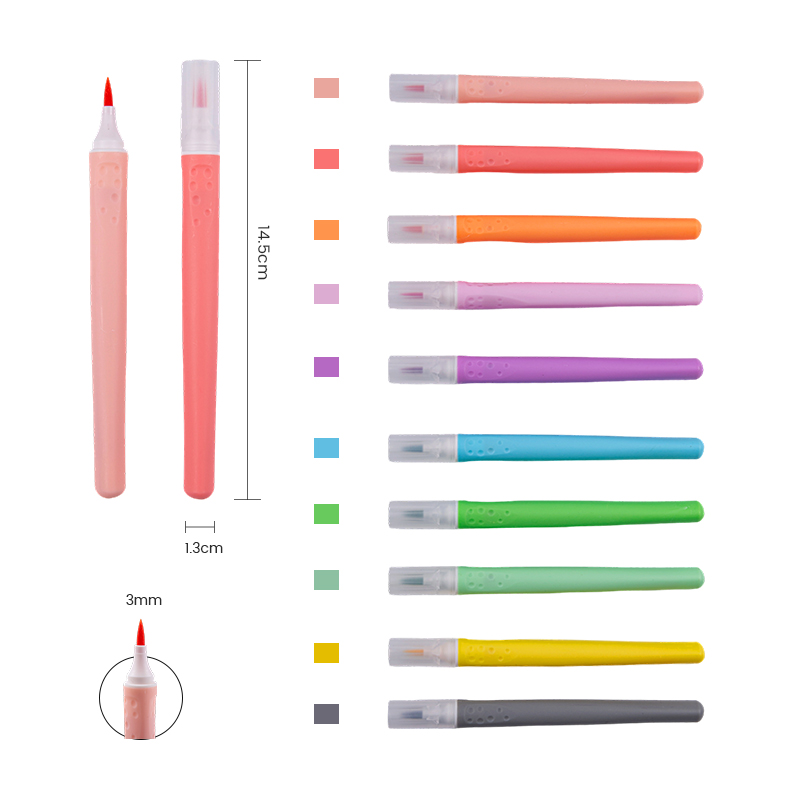El marcador de cepillo Comfortable Feel con cubierta transparente es una herramienta versátil diseñada para artistas, diseñadores y entusiastas creativos. Ya sea que se utilice para ilustración, caligrafía o coloración, este marcador de pincel ofrece una experiencia de dibujo agradable con su diseño ergonómico y su punta de pincel de alta calidad. La cubierta transparente garantiza que la tinta permanezca fresca y al mismo tiempo permite a los usuarios ver la punta del marcador, lo que agrega comodidad a su uso.