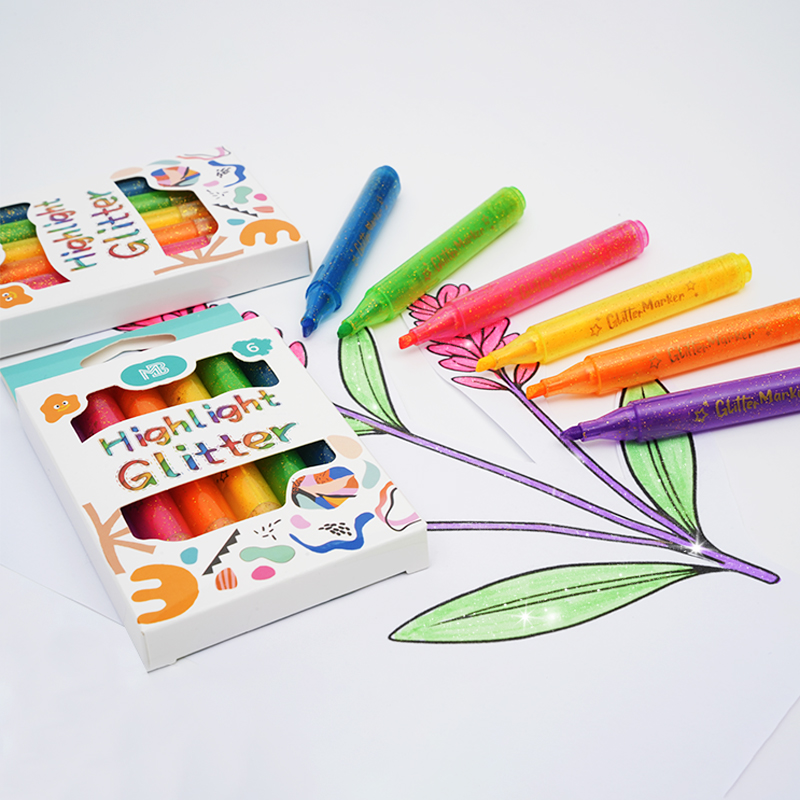 Una de las características clave del marcador de color de brillo corporal Bright Colors Gold Glitter es su capacidad para producir tonos vivos al tiempo que incorpora un efecto de brillo dorado brillante. La tinta fluye suavemente, creando una capa uniforme de color con un toque brillante. Las partículas de purpurina dorada incrustadas en la tinta mejoran el brillo general y el atractivo de su obra de arte. Este marcador es ideal para resaltar texto, agregar bordes o mejorar ilustraciones con un brillo luminoso.