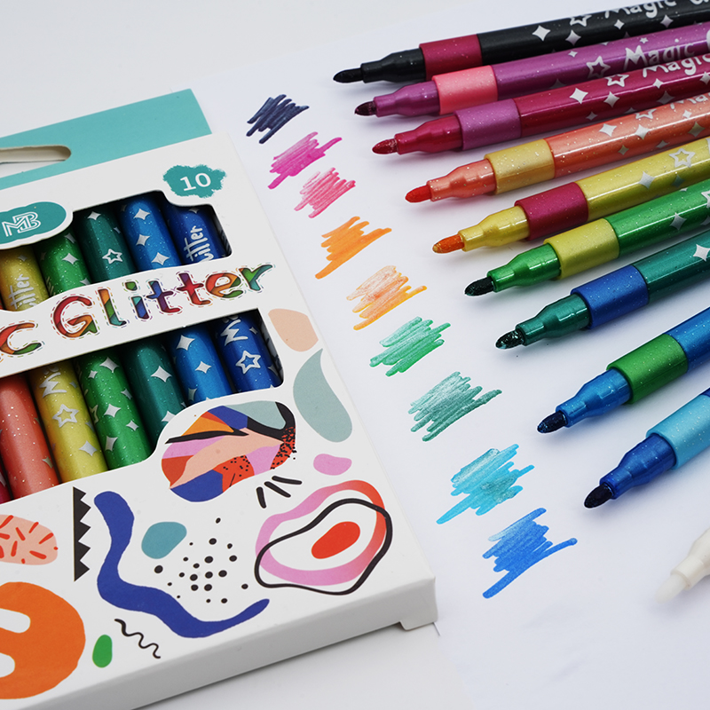 Libera tu creatividad con el marcador de color Color Change Smooth Clear Glitter, una herramienta única diseñada para mejorar tus proyectos artísticos. Ya sea que sea un entusiasta del arte, un estudiante o un diseñador profesional, estos marcadores brindan una forma emocionante de mejorar sus dibujos, caligrafía o manualidades de bricolaje. La aplicación suave, los tonos vibrantes y la tinta con purpurina garantizan que cada trazo deje un efecto brillante.