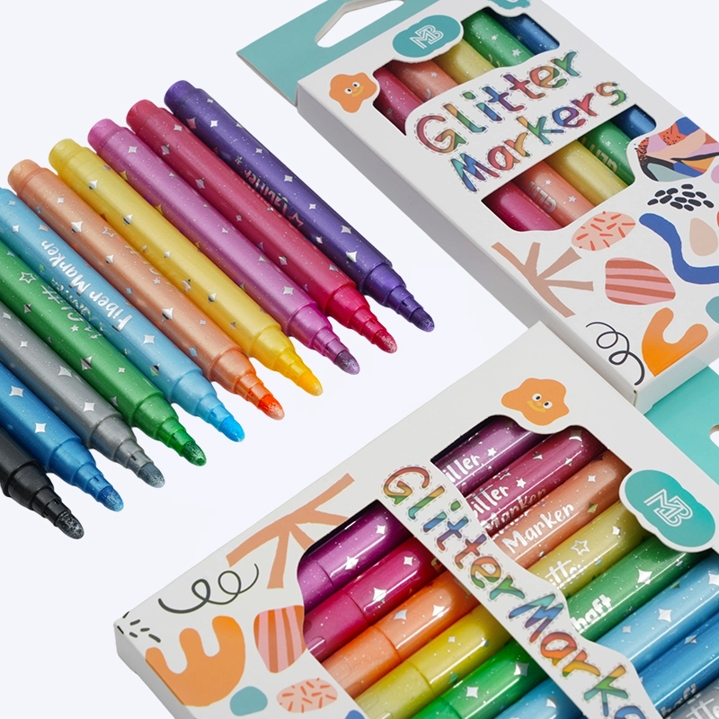 La durabilidad es una característica clave del marcador de color de purpurina curva brillante y colorida duradera. Fabricados con materiales de alta calidad, estos marcadores están diseñados para un uso a largo plazo. El cuerpo resistente evita roturas, mientras que la tapa bien sellada mantiene la tinta fresca y evita que se seque. Esto los convierte en una opción confiable tanto para usuarios profesionales como ocasionales que desean un rendimiento confiable sin reemplazos frecuentes.