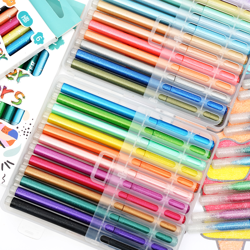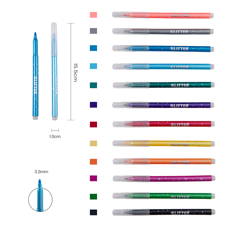 El cómodo marcador de color con purpurina brillante fácil de sostener combina tinta con purpurina vibrante, un agarre cómodo y un rendimiento suave para mejorar cualquier proyecto artístico. Ya seas un aficionado, un estudiante o un profesional, este marcador ofrece una experiencia de dibujo agradable y confiable.
