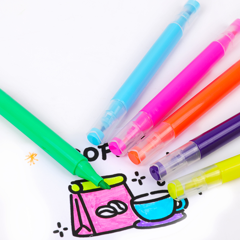 Una de las características destacadas del bolígrafo de doble cara con acuarela de tinta fluorescente es su diseño de doble punta. La punta del pincel de acuarela es completa para mezclar, sombrear y caligrafía, lo que permite trazos fluidos y expresivos. En el otro extremo, la punta del cincel proporciona líneas limpias y nítidas, ideales para subrayar, resaltar o diseños estructurados. Esta combinación facilita el cambio entre diferentes estilos artísticos sin cambiar de herramientas.