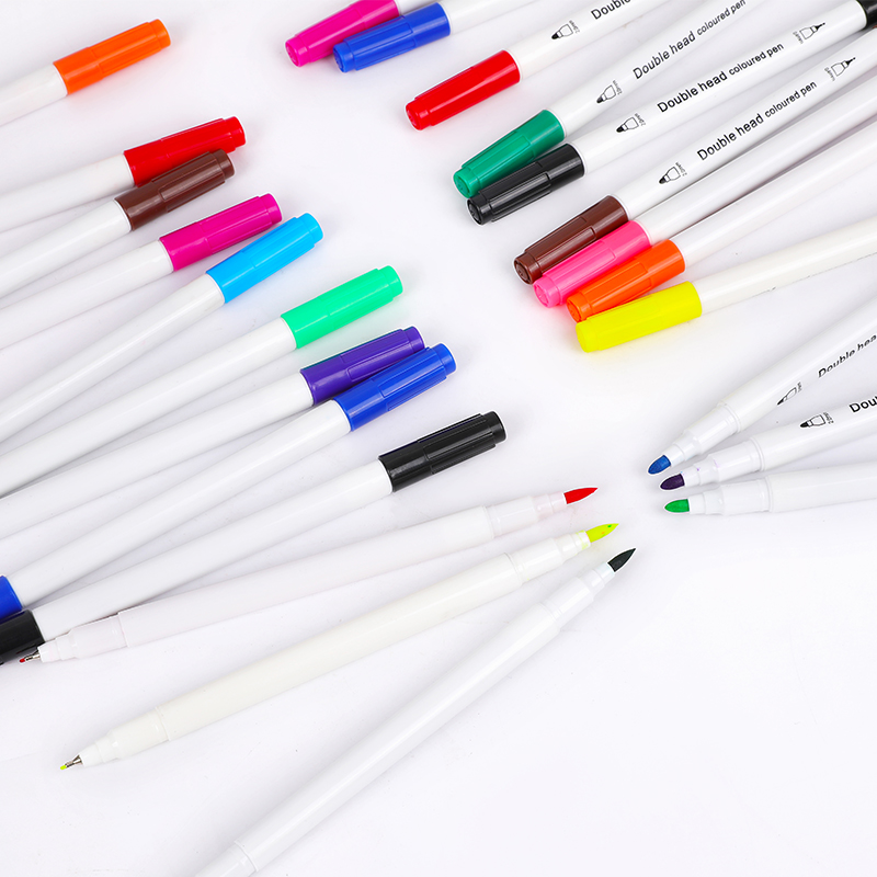 Diseñado para brindar comodidad y facilidad de uso, el bolígrafo multifuncional de doble cara para uso diario brinda una experiencia de escritura fluida e ininterrumpida. La punta fina se desliza sin esfuerzo sobre el papel, produciendo líneas claras y consistentes sin mancharse ni saltarse. La punta del cepillo, hecha de fibras de alta calidad, proporciona un flujo de tinta controlado para transiciones sin esfuerzo entre trazos gruesos y delgados.